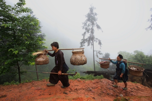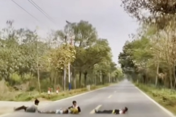 On March 8, in Qingyuan, Guangdong Province, four children lay horizontally in the middle of the road, imitating a black…