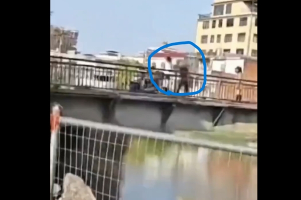 The video shows the man losing control of his emotions and throwing the young child into the river. The wife broke down on the spot, directly climbed over the bridge railing and jumped into the river to rescue the child. After hesitating for a brief moment on the bridge, the man also followed and jumped into the river. The other child stood on the bridge crying out in desperation, “Save my mom!” In the video, someone on the shore can be seen throwing wood into the water in an attempt to help.