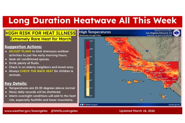 To prevent heat-related illnesses, the NWS Los Angeles/Oxnard office urgently advises limiting strenuous activities to early mornings or evenings, wearing light and loose clothing, staying in air-conditioned spaces, avoiding direct sunlight, staying hydrated, and checking on elderly neighbors and family members.