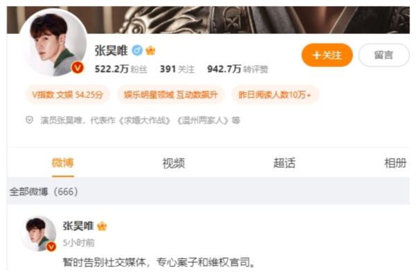 Similarly, according to “Securities Times”, on the day Zhang Haowei was exposed for tax issues, the official Weibo account of the web drama “Sheng Nu” edited a post from May, removing the mention of Zhang Haowei’s special appearance. The topic of “Zhang Haowei suspends acting work” on August 24th gained widespread attention, and in the early hours of the 25th, Zhang Haowei announced on Weibo: “Temporarily bidding farewell to social media, focusing on the case and legal proceedings for justice.” This reignited discussions among the public.
