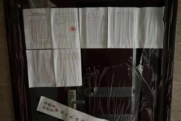 A screenshot of the online video circulating online shows that the properties have been sealed by the Hefei Intermediate People’s Court in Anhui Province, along with notices of seizure, auction (sale), and a deadline to vacate the properties.