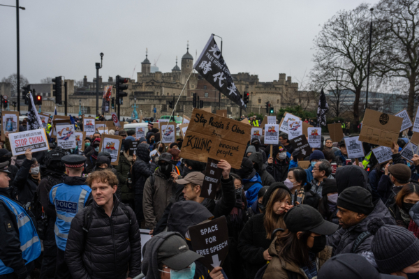 The organizers stated that the primary goal of the protest was to “overflow” the Royal Mint Court area and show the London police that the location could not accommodate large-scale protests and was unsuitable for the construction of a new Chinese embassy.