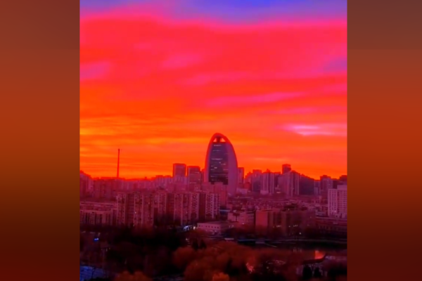 Images and videos online depicted the sky in Beijing this morning resembling a blood-red plasma. While state media described it as resembling “rosy dawn,” some netizens expressed concern, with comments questioning whether this was a good omen. Discussions around this topic sparked heated debates among netizens and rapidly trended on Weibo.