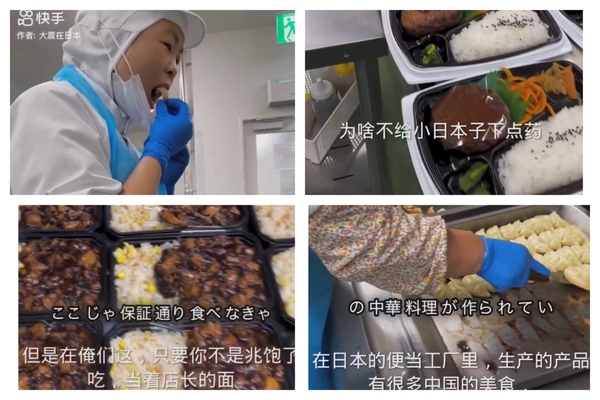 The video shows many Chinese employees preparing and packaging food. In the footage, some employees were not wearing masks, and there was a scene of a female employee taking off her mask to eat fried chicken. The narrator also mentioned that the Japanese love “mapo tofu from China.”