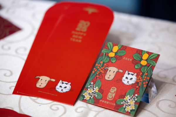 Following that, President Tsai and Vice President Lai interacted with visitors at the Presidential Office of the Republic of China. President Tsai handed out spring couplets, Vice President Lai distributed red envelopes, and Secretary-General Pan Meng-an distributed limited edition Presidential Office snacks.