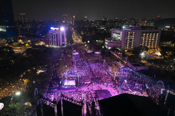 The New Year’s Eve event at the Taipei City Government Plaza featured not only the main stage but also four diverse stages, drawing a crowd of over 220,000 people. The event concluded in the early hours of January 1st. In the early morning of January 1st, some people passing by the site of the Taipei City Government’s New Year’s Eve party were shocked to see that the large screen outside the city hall was airing a New Year’s program from China Central Television, and this scene was shared on a Facebook group. Lee Hou-ching, Secretary General of the Taiwan Culture Association, criticized this, asking, “Why broadcast a program from the Communist Party?”