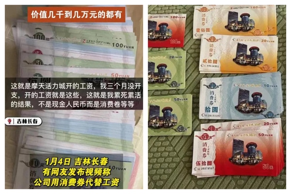 The netizen questioned the appropriateness of receiving consumer coupons instead of cash for their work at the skyscraper Vitality City in Changchun, where they haven’t received any actual cash for three months. They expressed frustration about receiving coupons instead of their hard-earned wages.