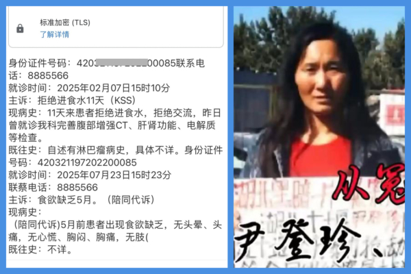 On June 29, 2023, Yin Dengzhen was beaten by security guards (police claimed to be court police) across the street from the Supreme Court in Beijing, fracturing three ribs. She was then falsely accused of “attacking the police” and sentenced to 4 years and 6 months in prison after secret trials in the first and second instance.