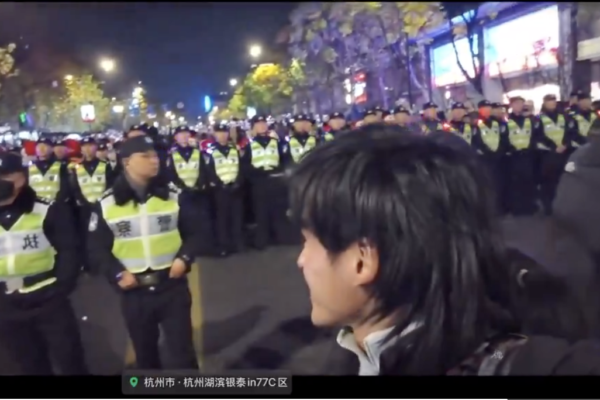 In Hangzhou on New Year’s Eve, a foreigner led the crowd in chants but was subsequently arrested by the police.