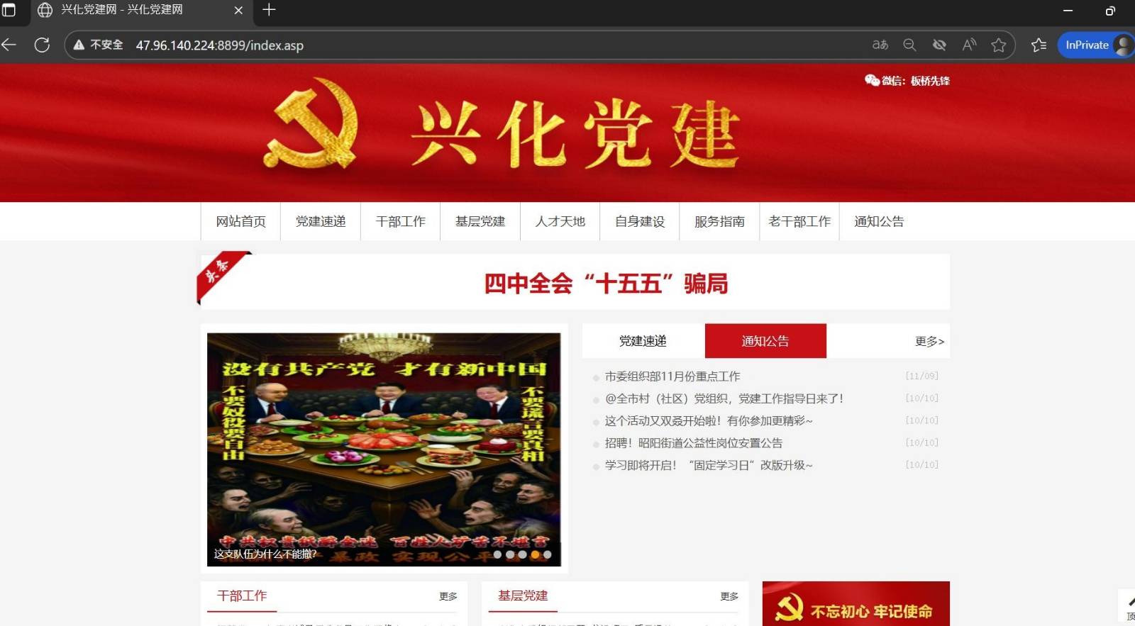 Anonymous 64 announced on X on October 22 that it had relaunched operations, with its first wave targeting four websites including the China Council for the Promotion of International Trade’s Creative Design Industry Development Center and Asia-Pacific News Economy, planting slogans such as “Without the Communist Party, there can be a new China” on their homepages. The group claimed it intercepted confidential talks among top-level CCP officials and accused the “15th Five-Year Plan” of being a “blueprint turned scam.”