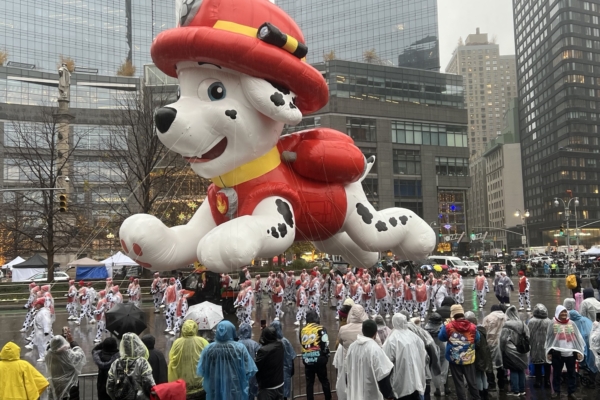 Braving the Rain to Watch Thanksgiving Parade with Macy’s Balloons as Audience Flocks for Giant Inflatables