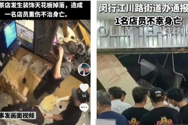 According to an official report released on August 16th by the Minhang District Jiangchuan Road Subdistrict Office’s official Weibo account “@Jiangchuan Community,” at around 8:15 p.m. on August 15, 2025, the ceiling decoration of a milk tea shop located at 900 Heqing Road in Shanghai collapsed, causing one staff member to be injured and unfortunately lose their life. The store has since ceased operations, with investigations into the cause of the incident currently ongoing.