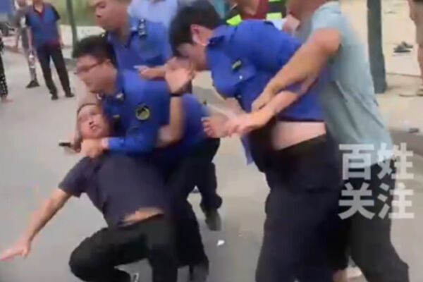 According to the footage from the scene, multiple urban management officers and street vendors were seen grappling with each other. At least 5 officers in uniforms were involved, with both sides making choking motions and some individuals being thrown to the ground.