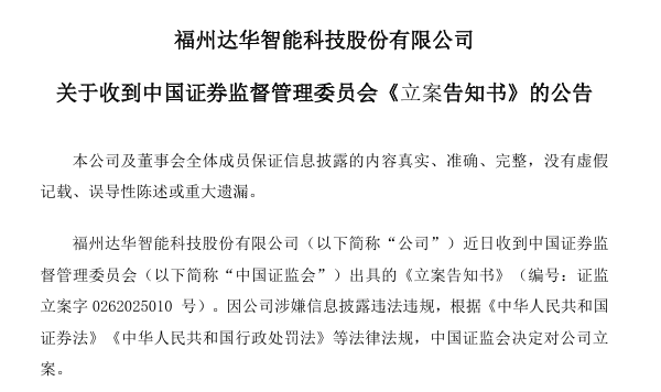 Fuzhou Dahua Intelligent Technology Co., Ltd. (Dahua Intelligent) has once again been investigated for financial fraud, and after the news spread, the stock price of the company plummeted.