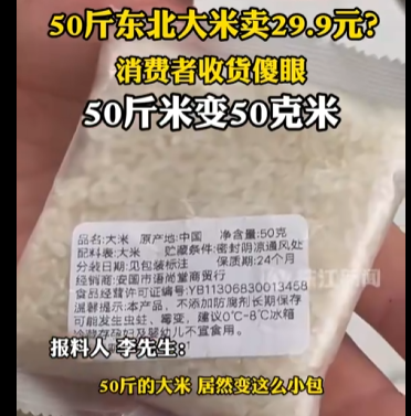 According to a video report by Pearl River News on March 2nd, Mr. Li, who lives in Foshan, saw a live stream where a host was selling 50 kilograms of Northeast rice for 29.9 RMB. Intrigued by the low price, Mr. Li placed an order online. Concerned about a potential scam due to the cheap price, he even took a screen recording of the live stream.