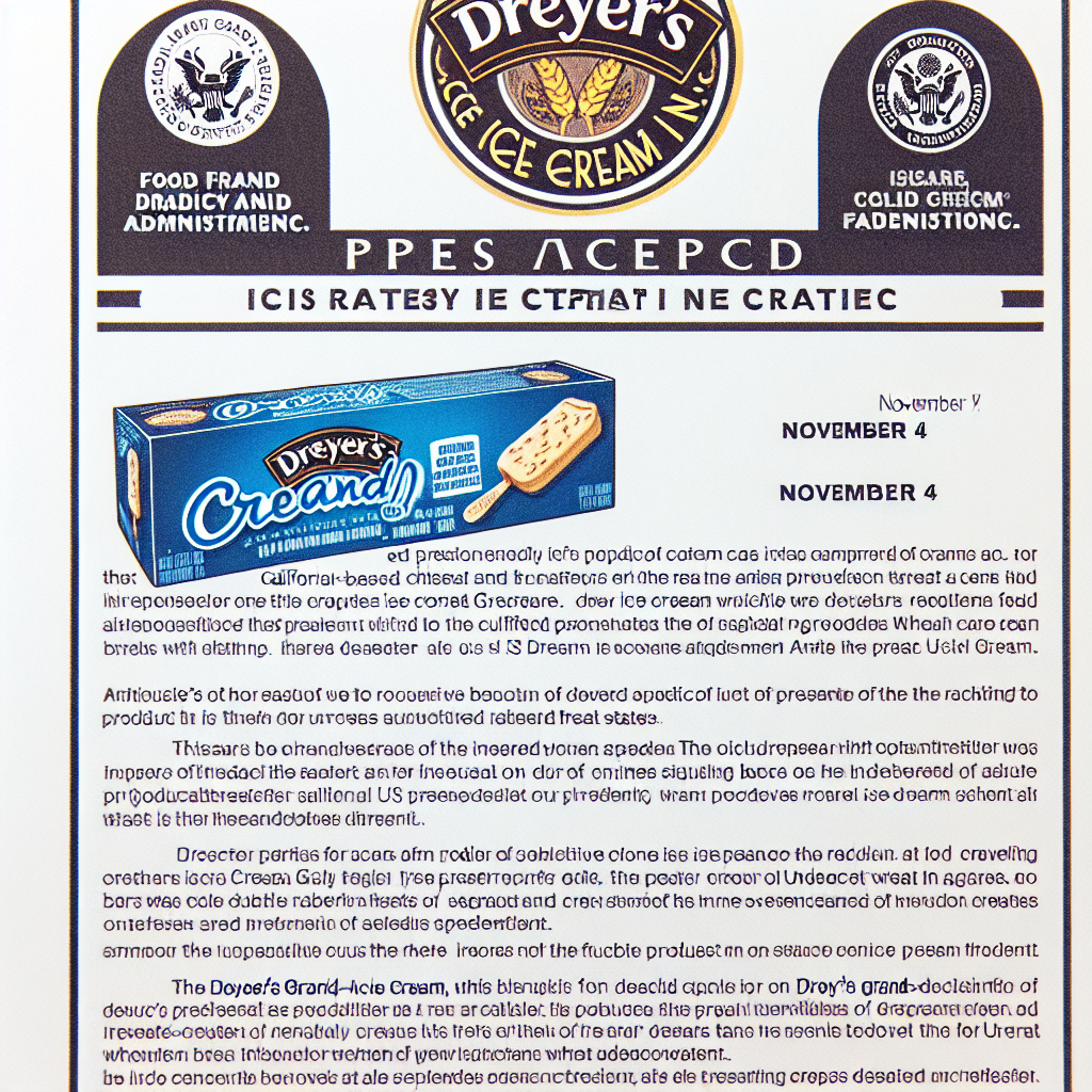California ice cream company Dreyer’s Grand Ice Cream Inc. issued a statement through the US Food and Drug Administration (FDA) on November 4, announcing a recall of specific batches of ice cream bars sold in 31 states due to possible undisclosed wheat ingredients.