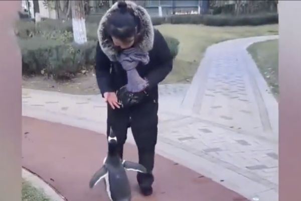 On November 8th, a woman walking a penguin in a residential area in Harbin went viral and captured the attention of the internet, with many mainland Chinese netizens exclaiming, “Where did she get the penguin from? I want one too.” However, community staff stated that walking a penguin is considered illegal behavior.