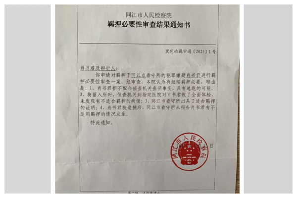 Family members revealed that the Tongjiang Municipal Detention Center had been refusing to let them deposit money for Xiao Shujun for several months, leading to him being unable to purchase essential daily items and food while in custody.