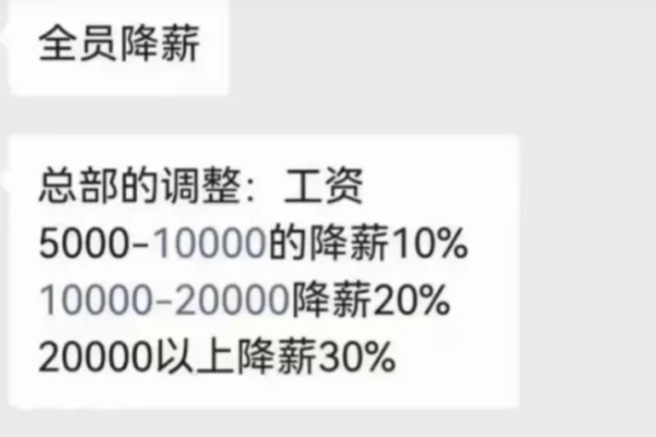 According to screenshots of online conversations, employees based at the headquarters with salaries ranging from 5000 yuan to 10000 yuan will face a 10% salary reduction; those earning between 10000 yuan and 20000 yuan will see a 20% cut; while those earning over 20,000 yuan will experience a 30% decrease in their salaries. Office staff at directly operated branch companies will face a 50% pay cut, while retail store employees will remain unchanged.