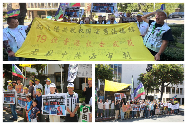 Several overseas organizations gathered in front of the Chinese Consulate General in Los Angeles on the afternoon of August 3rd with the theme “Democracy Cannot Be Deceived, and the Authoritarian CCP Must be Judged.” They condemned the Hong Kong government’s issuance of global arrest warrants for 19 members of the “Hong Kong Parliament” and showed support for Hong Kong democratic figures facing political persecution.
