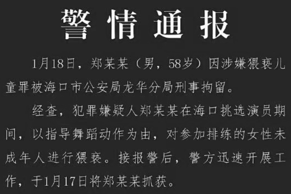 On February 19th, Jiangxi-born director and businessman Zheng Jifeng was recently arrested on suspicion of “molesting children while recruiting actors…