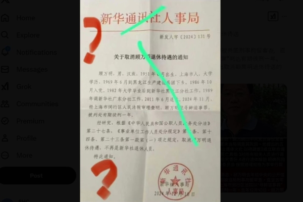 Retired journalist Gu Wanming, who had worked at the Chinese Communist Party’s Xinhua News Agency for nearly 30 years, was…