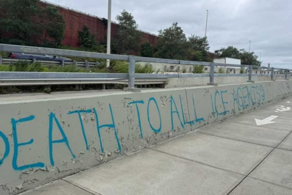 On August 22nd, graffiti appeared on the pedestrian walkway of the Kosciuszko Bridge in New York, targeting the Immigration and Customs Enforcement Agency (ICE) with the words “Death to All ICE Agents.” Councilman Robert Holden of the 30th district released a statement strongly condemning the graffiti and warning that such dangerous rhetoric could ultimately lead to tragedy.