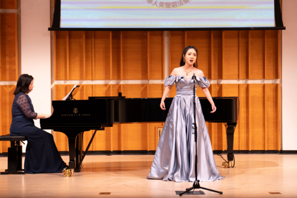 For this competition, she prepared two Chinese art songs: “Ding Feng Bo- Mo Ting Chuan Lin Da Ye Sheng” (shortened as “Ding Feng Bo”) and “Chang Ming Nu- Chun Ri Yan”.