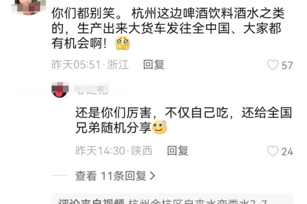 Another netizen sarcastically commented, “Beverage and alcohol products produced in Hangzhou are sent out in large trucks to the whole country, so everyone has a chance!” Expanding concerns about food safety nationwide, this comment was full of ridicule.
