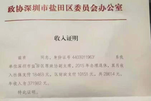Recently, the news of a retired official from the Political Consultative Conference in Shenzhen earning nearly 30,000 yuan per month has sparked controversy. This revelation stands in stark contrast to the average monthly pension for retired employees of mainland Chinese enterprises, which is only around 3,162 yuan, generally less than 5,000 yuan. A “Income Statement” issued by the Office of the Shenzhen Yantian District Committee of the Political Consultative Conference, bearing an official stamp, highlights the significant disparity in retirement benefits between government officials and ordinary citizens, prompting strong societal scrutiny. According to a disclosure by a Shenzhen civil servant, as early as 2008, the retirement salary of director-level officials had already reached 10,000 yuan.