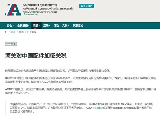Timur Irtuganov, CEO of AMDPR, stated that after the Russia-Ukraine conflict, Chinese component companies filled the void left by European enterprises, exporting over $1.3 billion worth of furniture components to Russia annually. The sudden tariff increase is not only expected to raise prices of local furniture products by over 15%, but could also entail retroactive taxes on imports since 2021, severely impacting the related industries, potentially leading to bankruptcies of supplier companies.