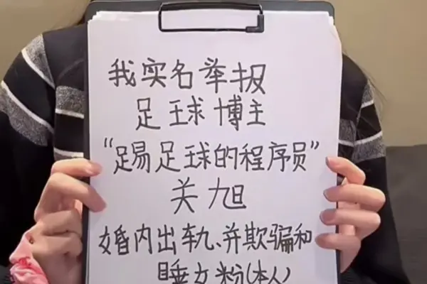 A new scandal has emerged in the Chinese football community. Recently, a woman came forward to publicly accuse a football blogger with over a million fans, known as “The Programer Who Plays Football,” of having an extramarital affair, sparking heated discussions. As of now, the accused individual has not responded to the allegations.
