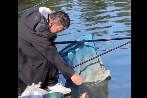 Mr. Liu, the person in charge of the fishing area, mentioned that the fish in the video weighed around 30 pounds. Due to a rule at the fishing area, fish weighing over 10 pounds are not allowed to be taken away. If someone wants to take them, they need to purchase the fish based on weight. After being caught and released multiple times, the large fish in the video has gradually lost its fear of humans and even learned to actively beg for food from them.