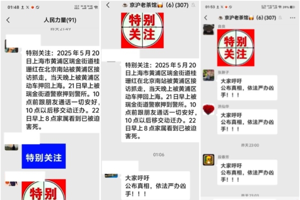 Zheng indicated that before 10 a.m. on the 20th, Gui Shanhong was still in contact with other petitioners who traveled to Beijing with her. However, after being taken to a black prison by the police from the Ruijin Road Police Station, she could no longer be reached.
