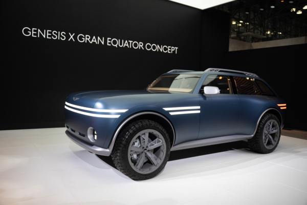 The luxury brand Genesis presented the X Gran Equator concept car with its attention-grabbing design elements such as an elongated hood and LED light strips running through the sides and rear of the vehicle. The interior boasts diamond-stitched leather seats and storage designed to accommodate eco-friendly water bottles, emphasizing its positioning as a premium off-road SUV. While details about the powertrain system have not been officially disclosed, the absence of a traditional grille at the front suggests a possible all-electric power drive.