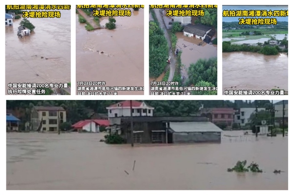 At approximately 6:40 p.m. on the 28th, a breach occurred in the embankment of Longtan Village, Liushuwan River in Huashi Town, Xiangtan County, with a length of around 10 meters. According to the official report from Hunan province, about 800 people who needed to be evacuated had been relocated to safe areas.