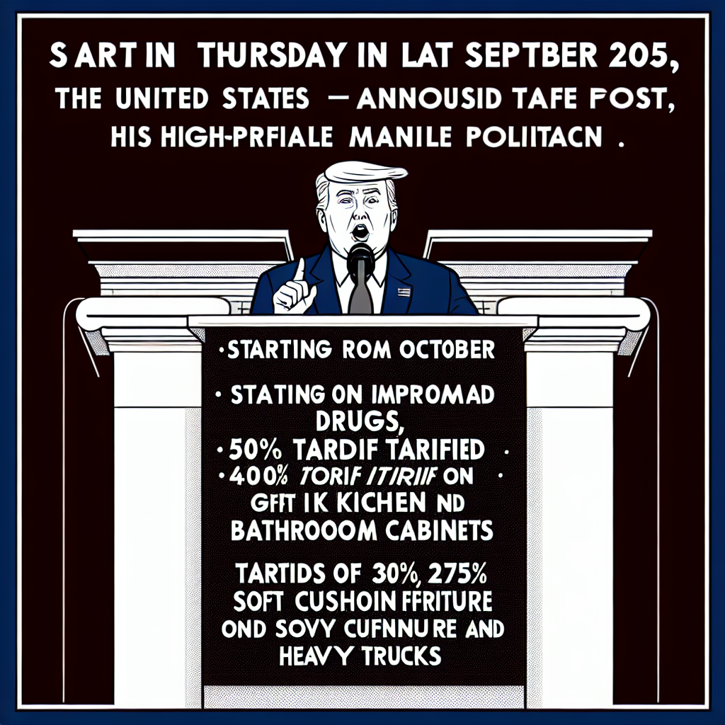 On Thursday, September 25, 2025, US President Trump (Trump) announced that starting from October 1, the United States will impose a 100% tariff on imported drugs, a 50% tariff on kitchen and bathroom cabinets, and tariffs of 30% and 25% on soft cushion furniture and heavy trucks, respectively.