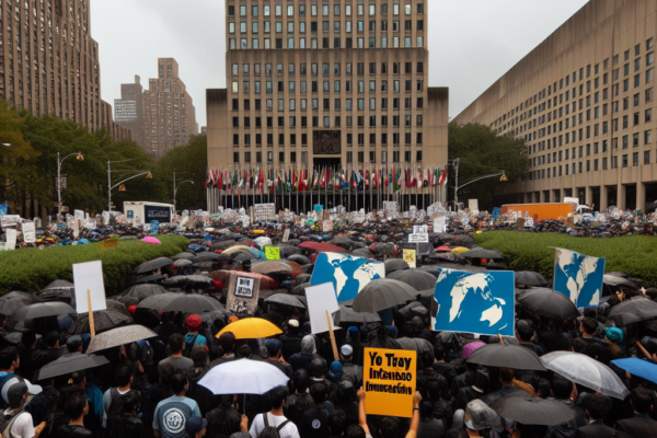 On a rainy day on September 25th, outside the United Nations headquarters in New York, the protest area was filled…